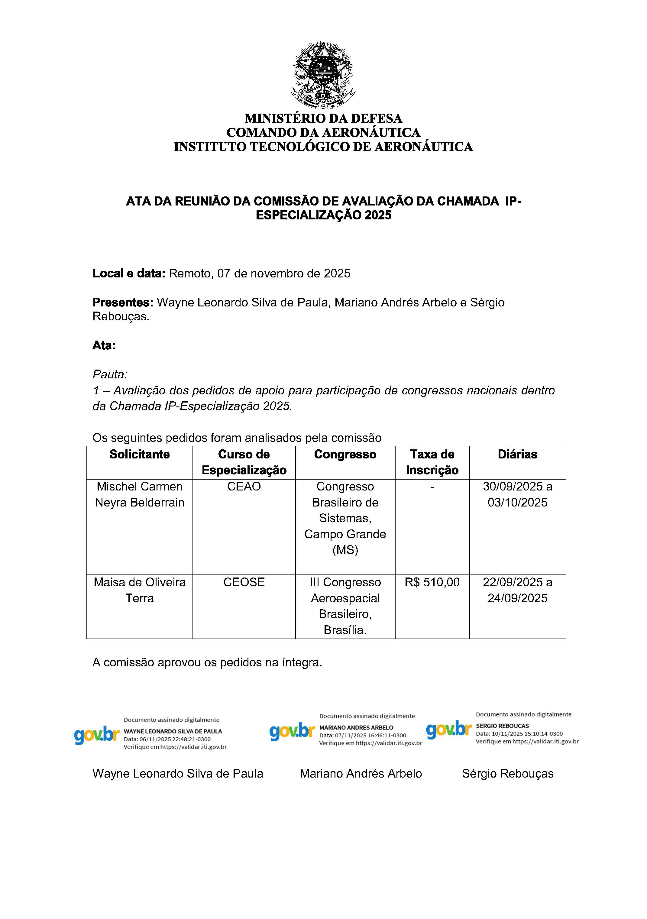Divulgo abaixo o resultado da chamada de Especialiação IP 2025.